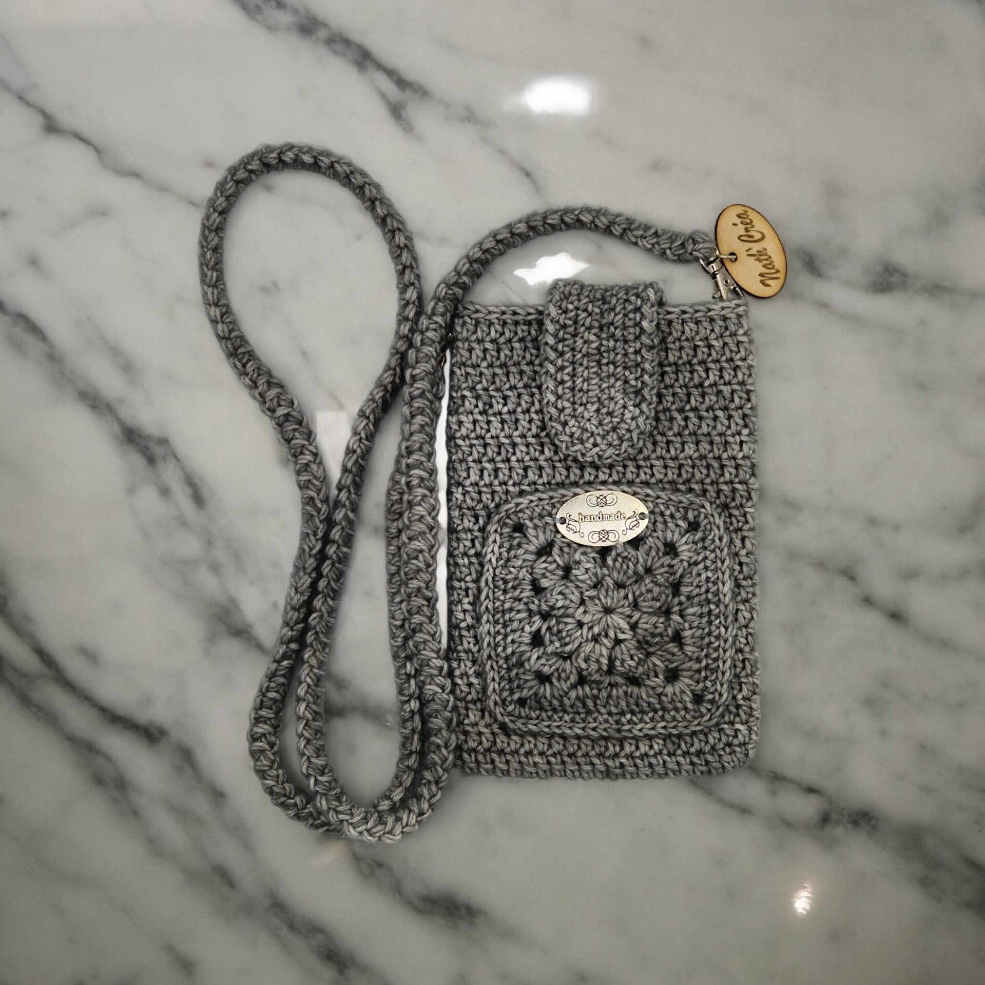 Elle est réalisée en "Stone Washed" de chez Scheepjes 78% de coton et 22% d'acrylic, Fermoir aimanté.