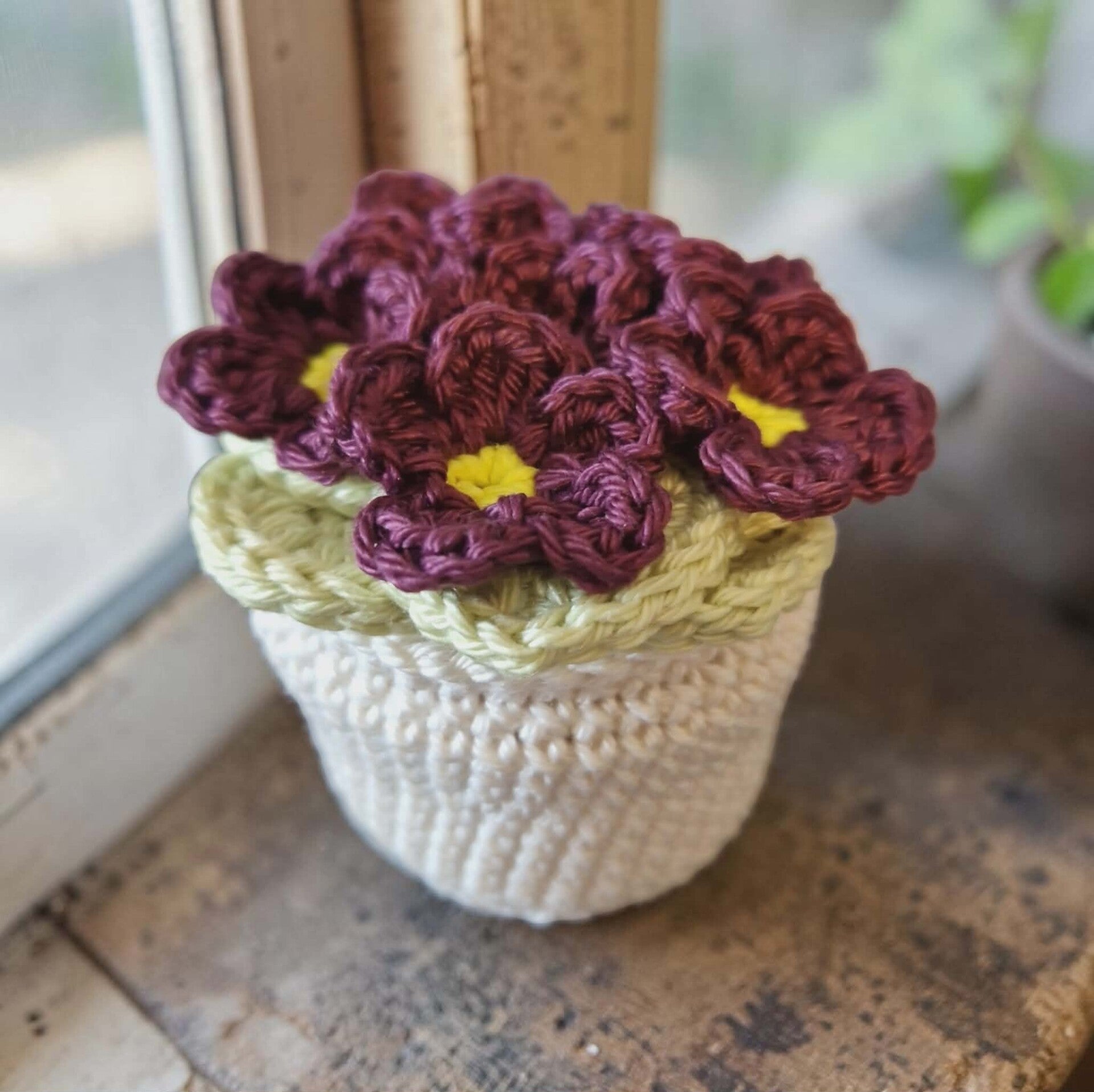 Ces adorables petits pots de violettes en coton au crochet mesurent 6 cm de hauteur et sont un ajout charmant à toute décoration intérieure. Chacun de ces pots est confectionné à la main avec soin, alliant artisanat traditionnel et esthétique moderne.